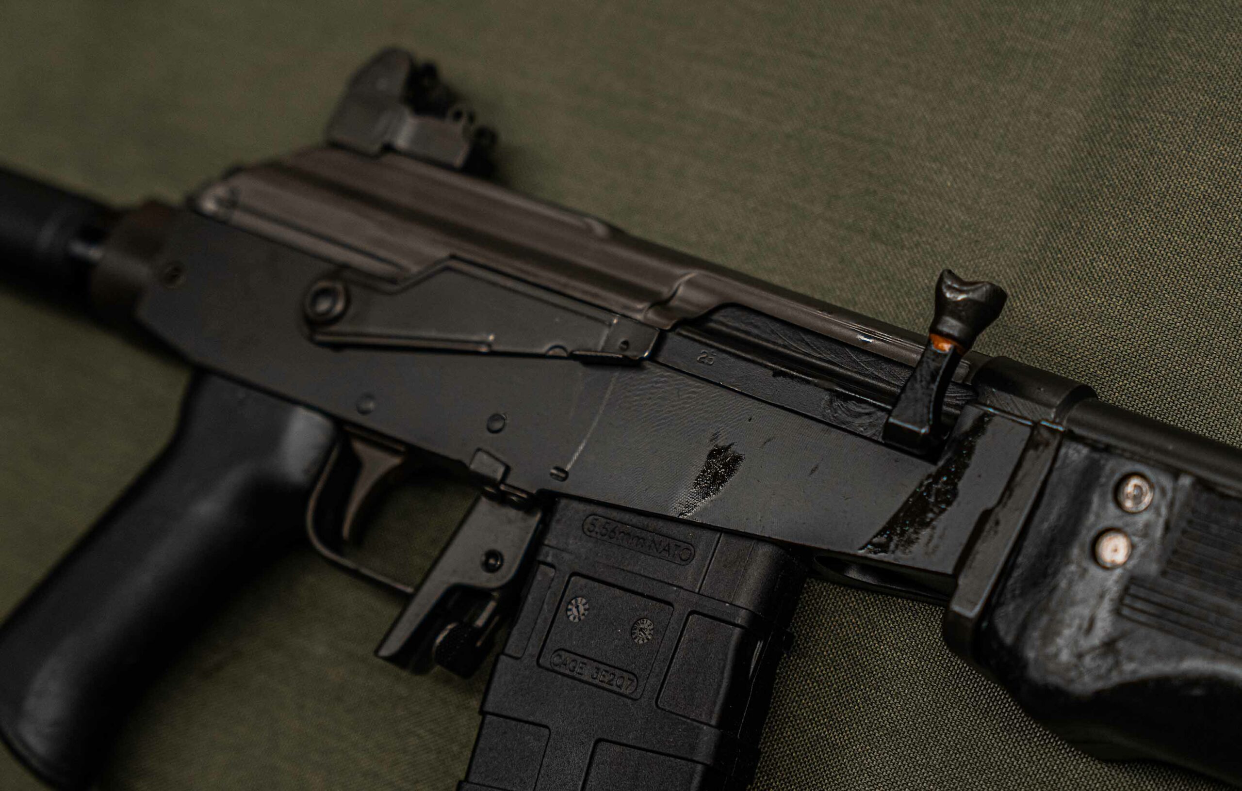 Unfired in box, assembled by ATI using Israeli IWI Galil kit with US made parts for compliance. 13″ threaded barrel (1/2×28), semi auto, takes Galil style mags. Soaked in oil, no issues with the finish.
