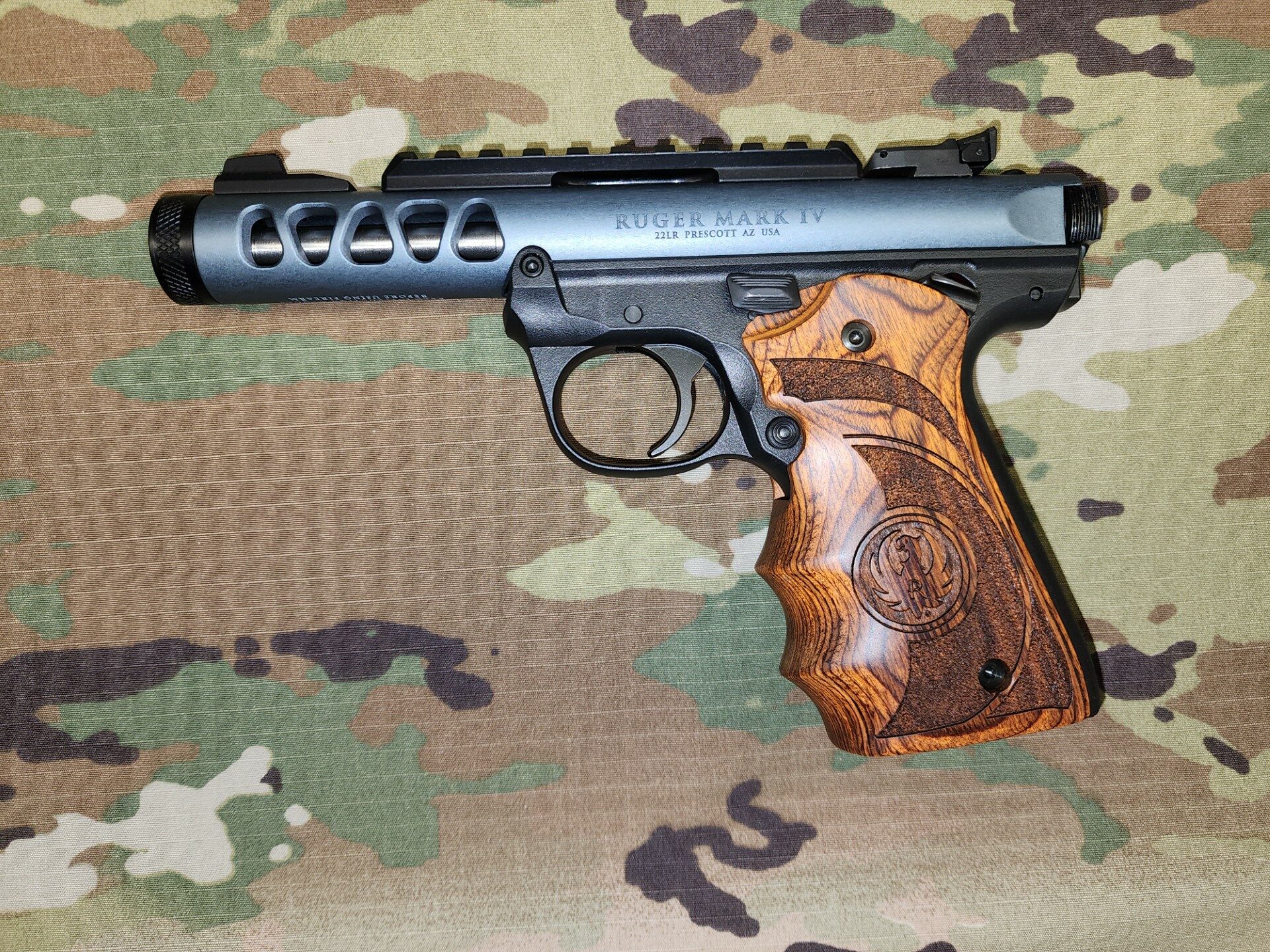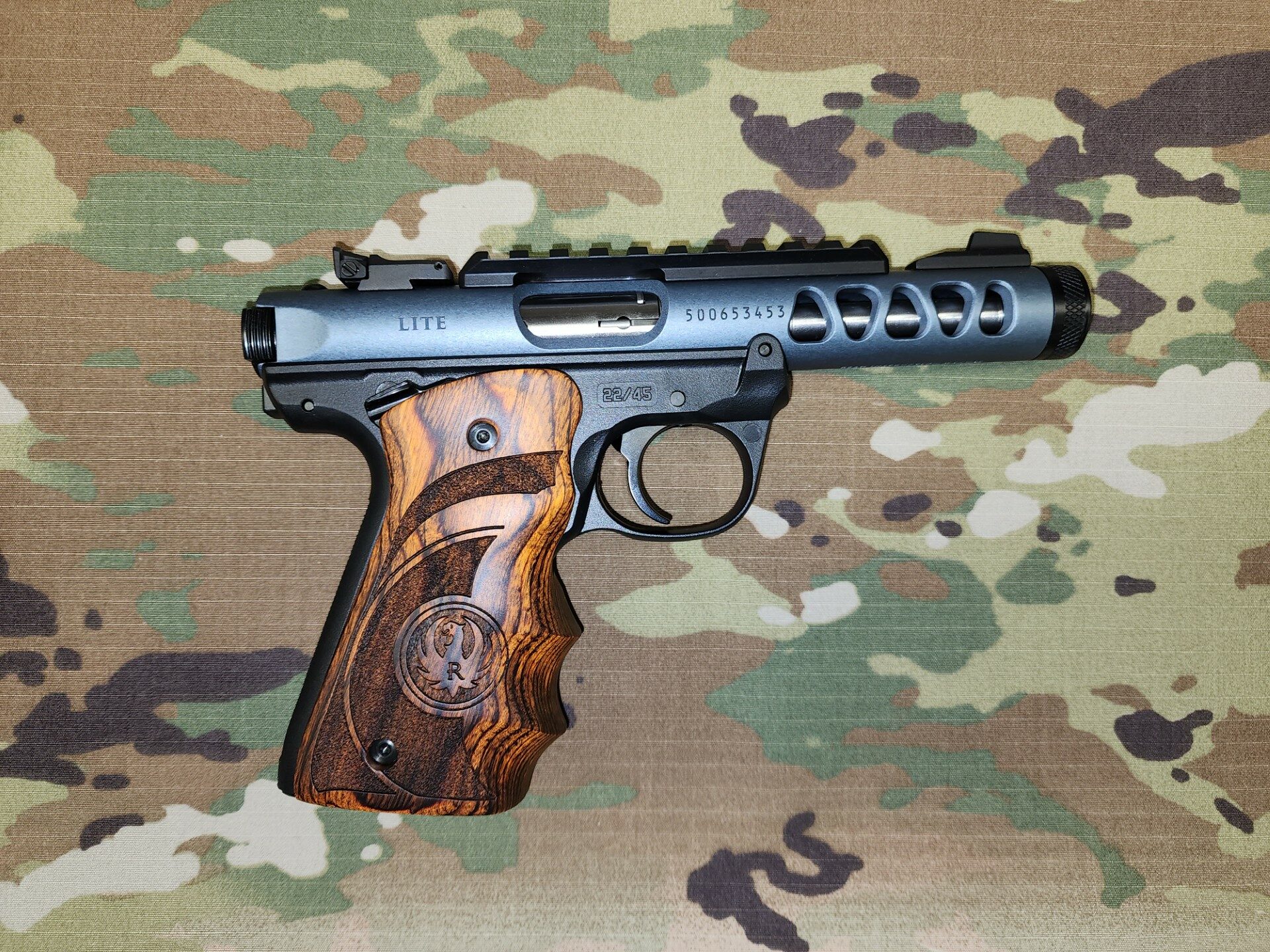Unfired in box, 4.4″ barrel (non-threaded, MA compliant), anodized slide, polymer frame, adjustable sights, scope rail, wood grips, 2 – 10 rd mags.