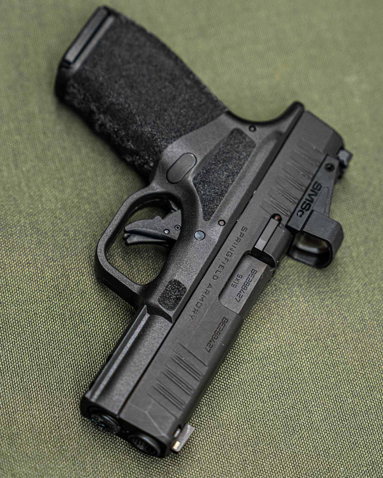 Used, excellent condition, 1 – 15 rd and 1 – 17 rd mags, tritium front sight, U-Notch Rear Sight, semi auto striker fired, melonite finish, optic ready with Shield SMSc optic installed, 3.7″ Barrel.